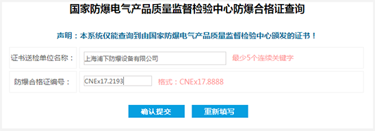 沈陽(yáng)頒發(fā)的防爆合格證查詢(xún)網(wǎng)址:http://www.fbdqhy.com/hgz_search.aspx