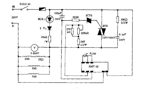 下圖為BGX-2080型防爆真空干燥箱的電路原理圖如圖,箱體的溫度控制采用了智能電腦溫控,溫度信號的采集用鉑電阻,經溫度控制器的放大與設定值進行比較得到PID控制信號,控制信號將控制可控硅的通斷,可控硅再控制加熱器加熱狀態,達到自動控溫的目的。